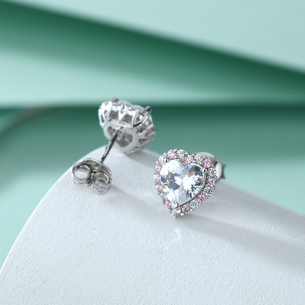 S925 Silver Pink Zircon Heart-Shaped Earrings – Romantic and Charming Stud Earrings for Women’s Daily Glam