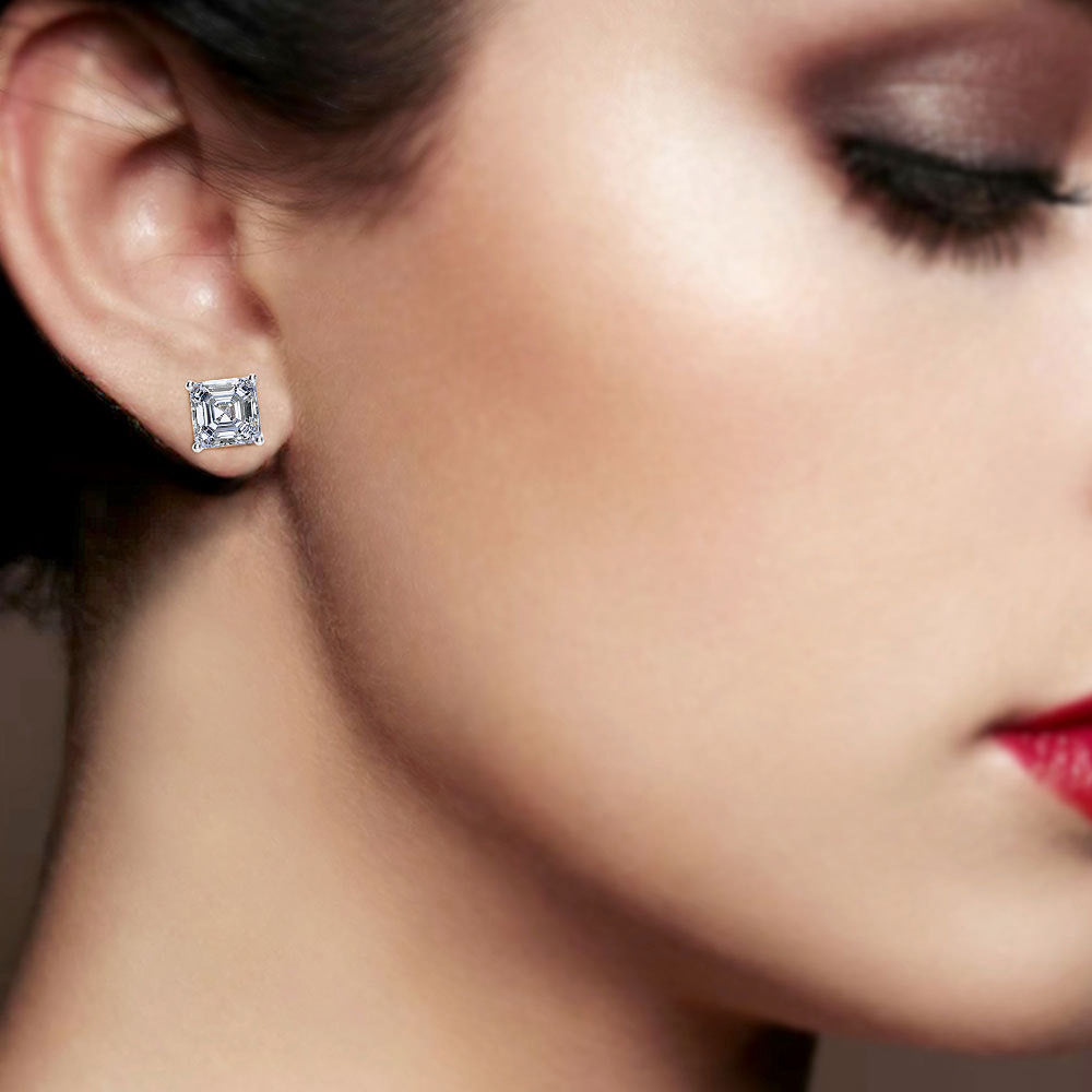 Simple four-claw inlaid 2-carat pagoda zircon earrings for men and women, fashionable and versatile
