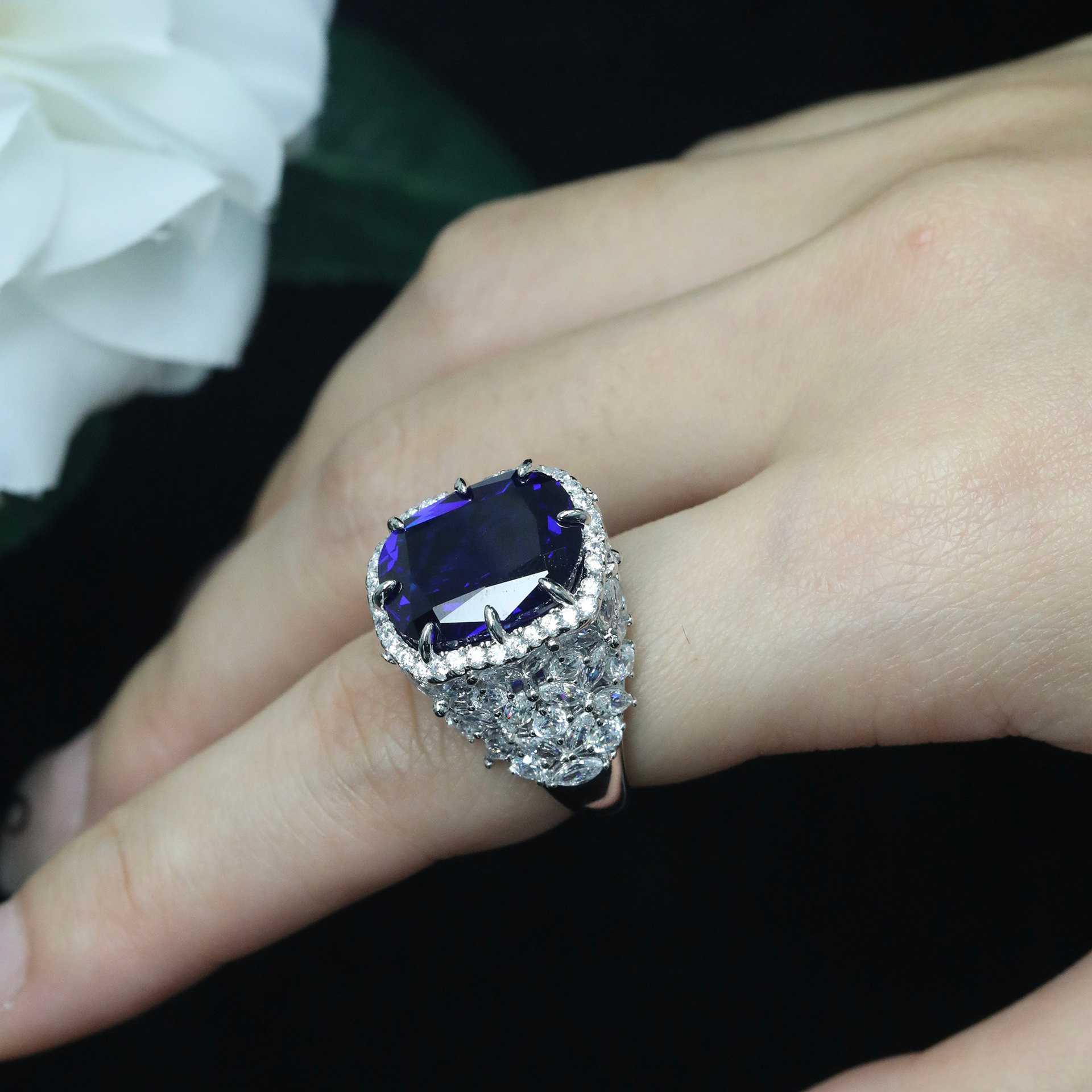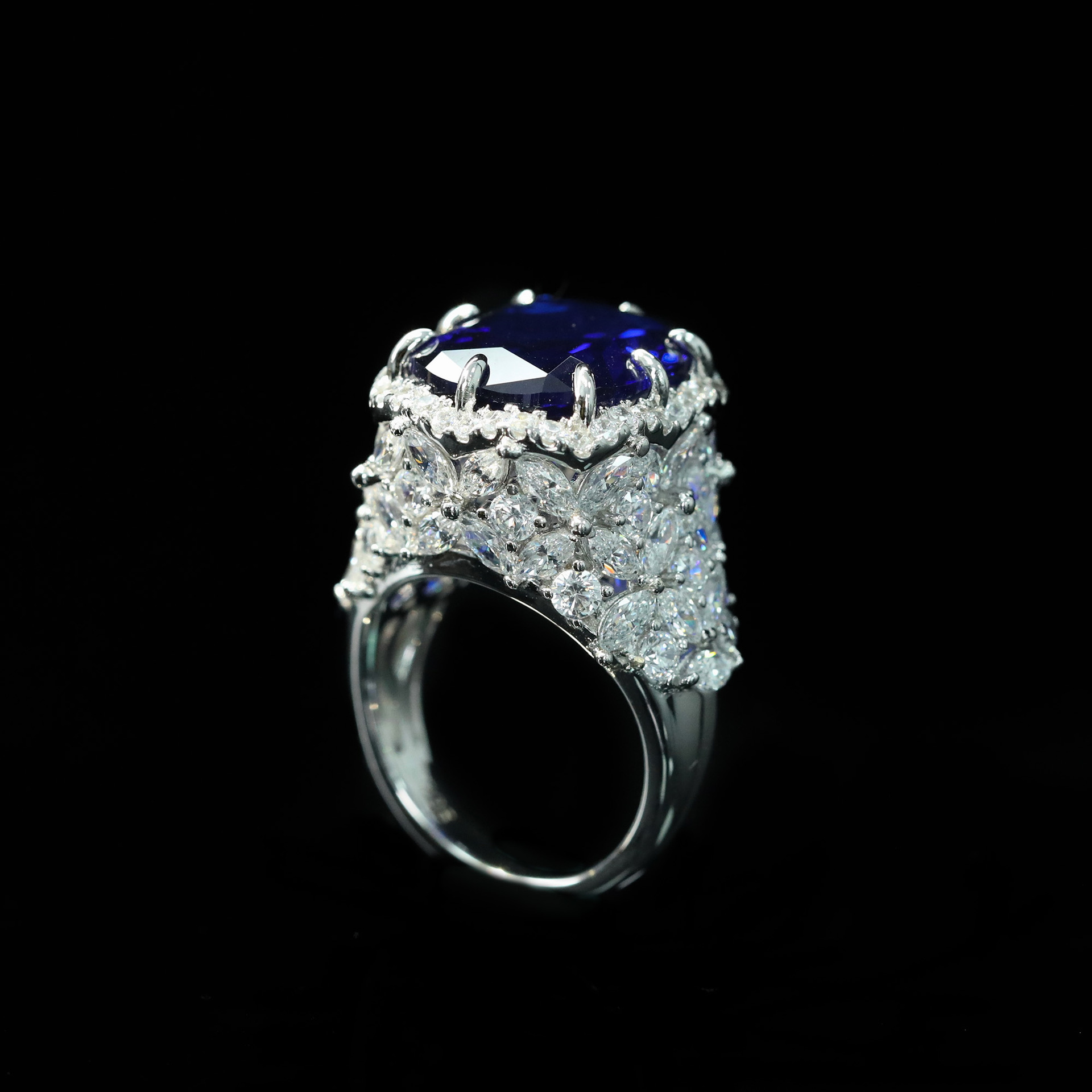 925 Silver Gold-Plated Sapphire Ring with High-Carbon Diamonds – Elegant & Timeless Design