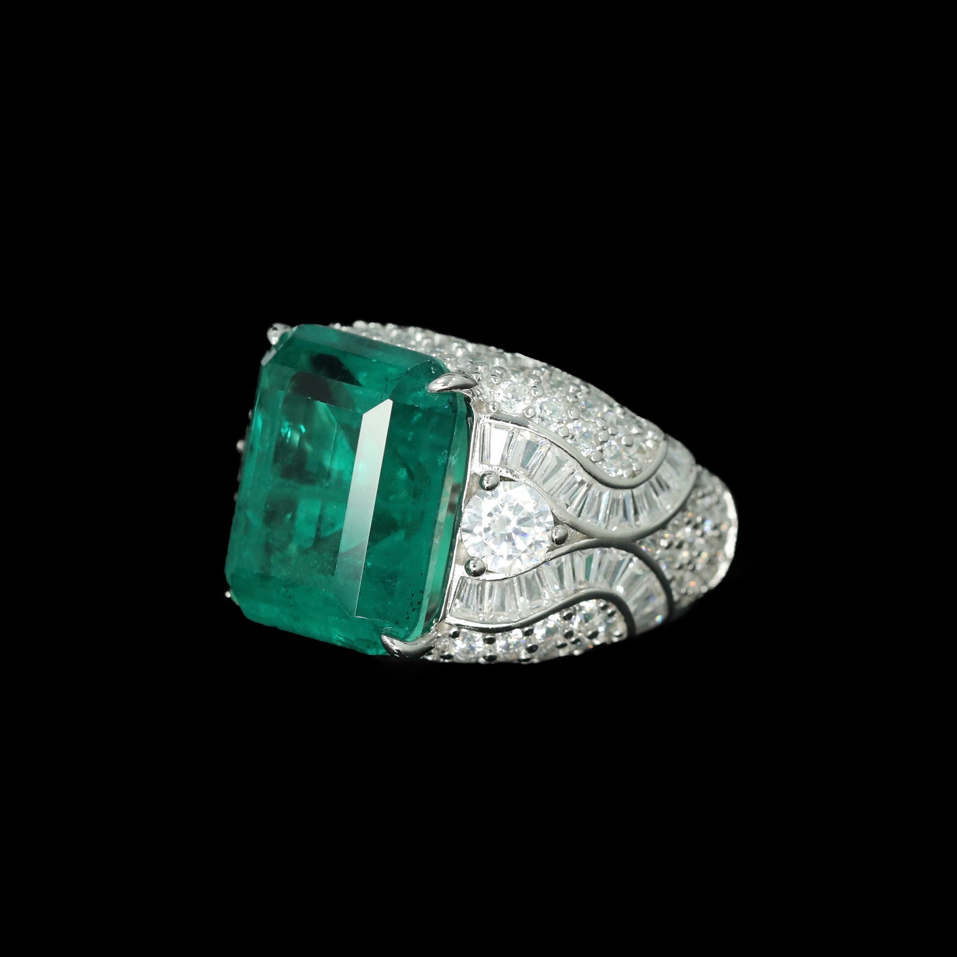 925 Silver Gold-Plated Wood Green Ring with High-Carbon Diamonds – Unique & Elegant Design