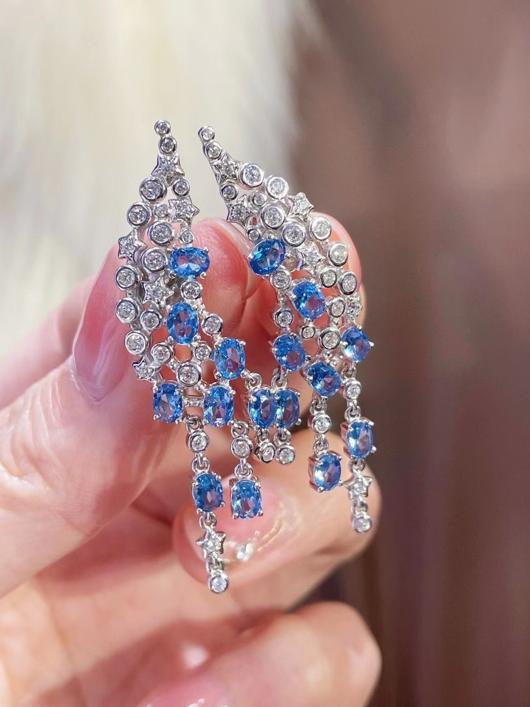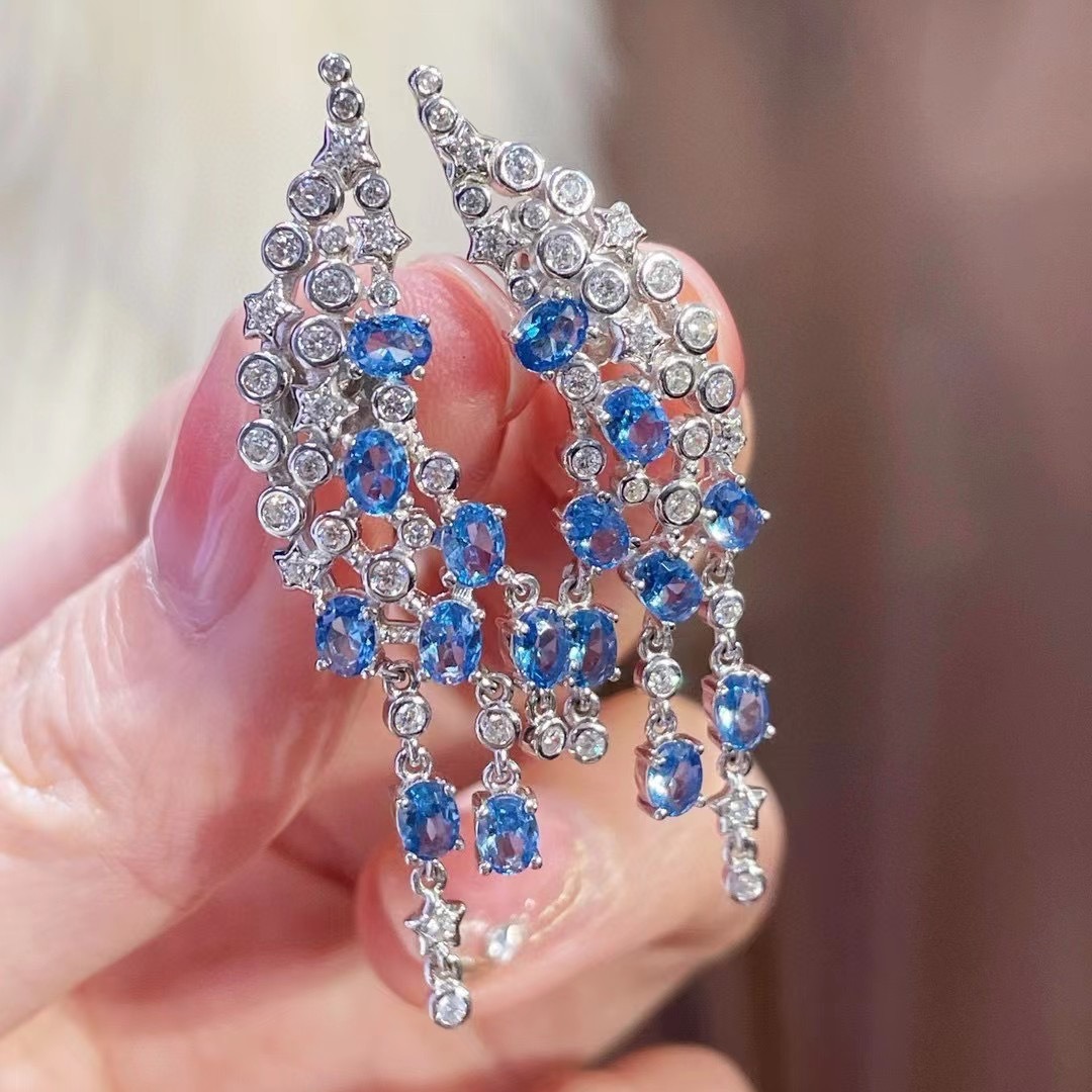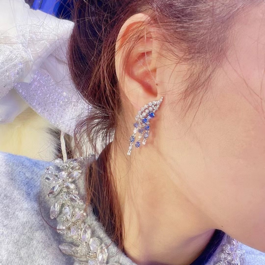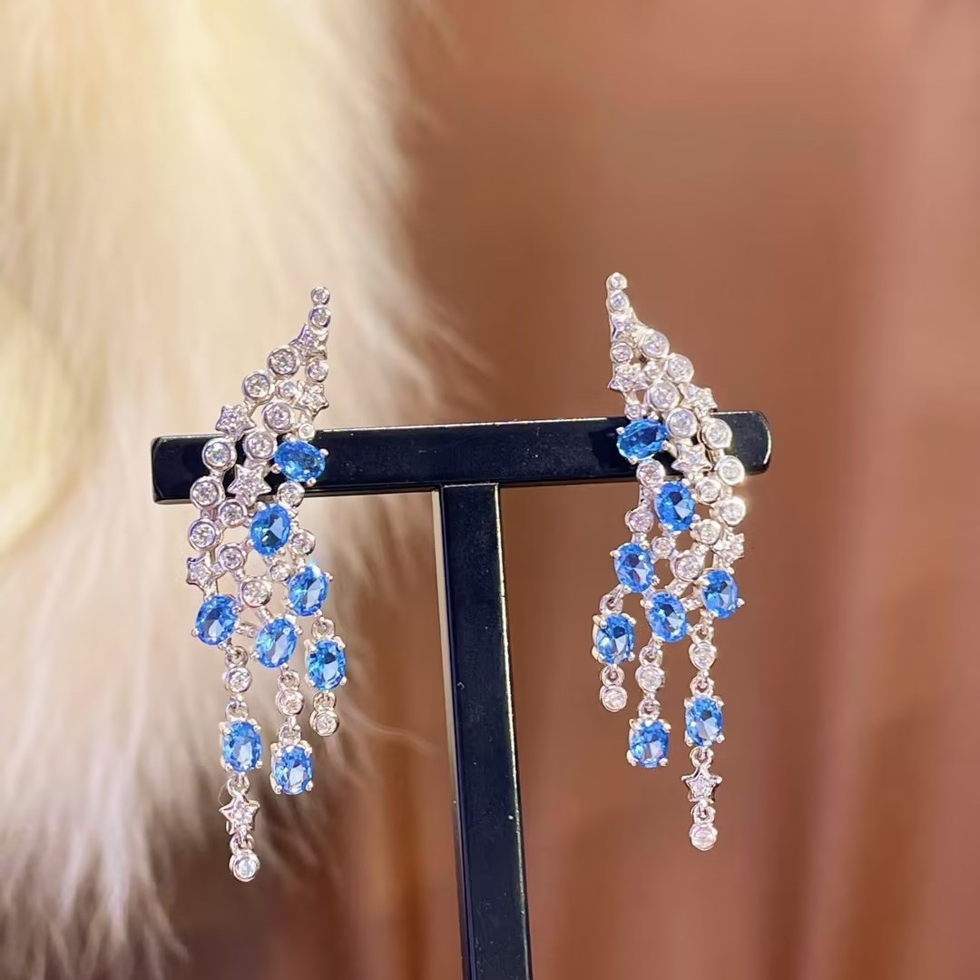 925 Silver Gold-Plated Royal Blue High Carbon Diamond Earrings – Elegant & Timeless Design