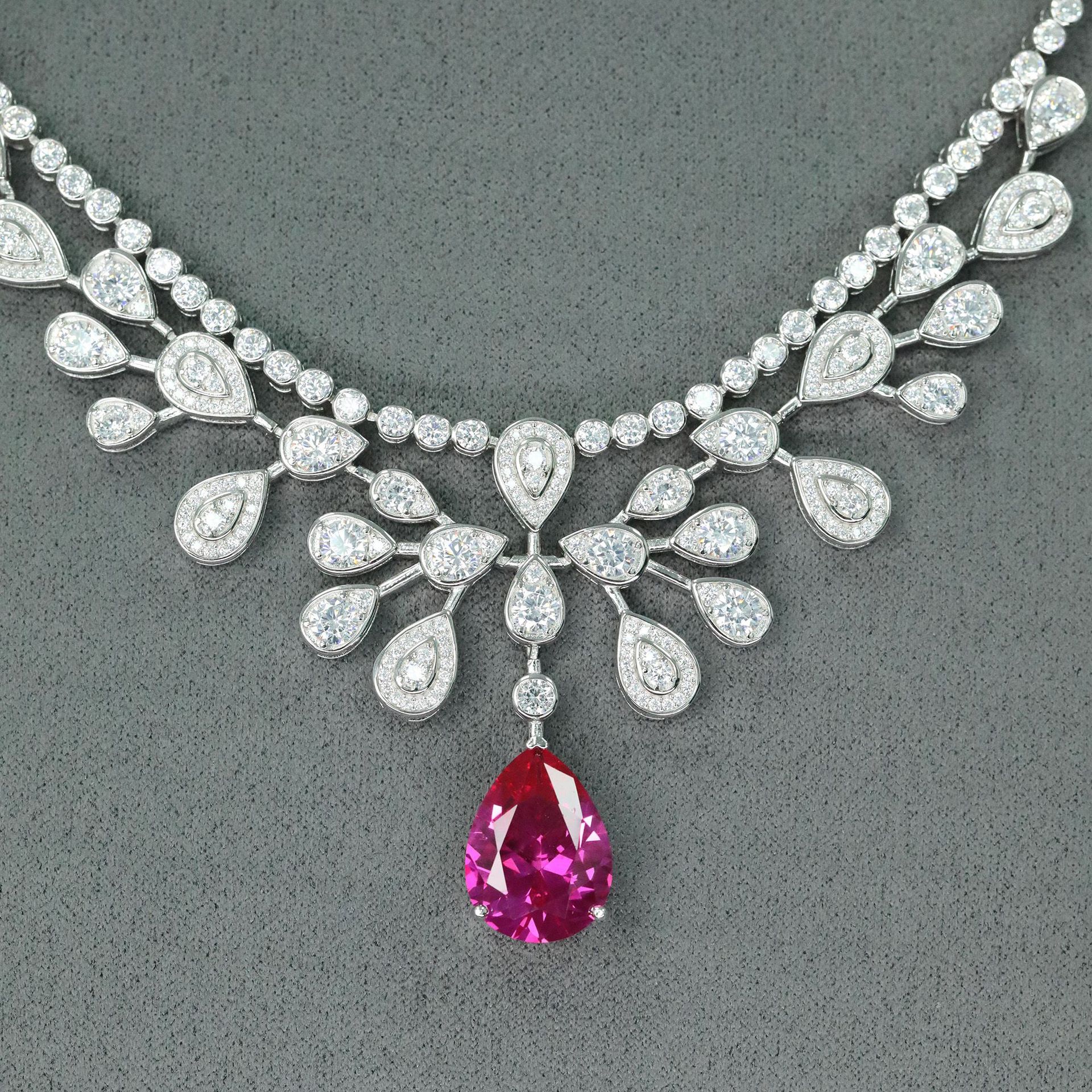 925 Silver Gold-Plated Pink Sapphire Necklace with High-Carbon Diamonds – Elegant & Sparkling Design